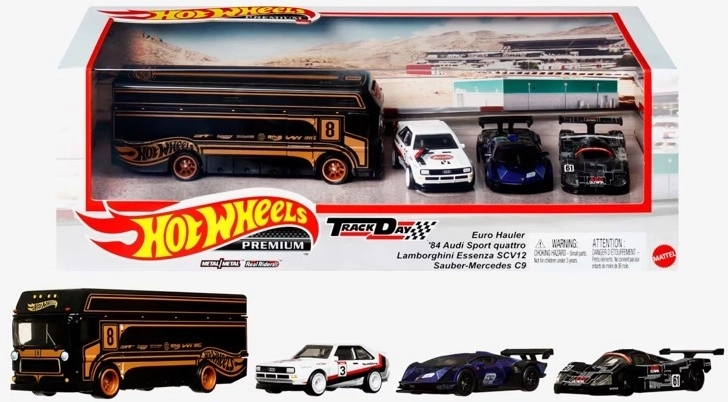 Entdecken Sie die Hot Wheels Premium Sammler-Edition mit vier Hot Wheels Autos im Maßstab 1:64. Jedes Auto verfügt über Real Riders Reifen und Metallchassis, kombiniert mit hochwertigen Dekorationen, die sie sowohl zum Spielen als auch zum Ausstellen großartig machen.