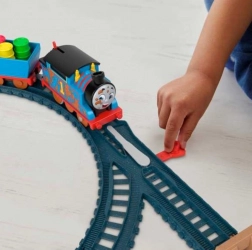 Erleben Sie Eisenbahnabenteuer aus der Serie Thomas und seine Freunde mit diesem Set aus Schiene und batteriegetriebener Lokomotive Thomas.