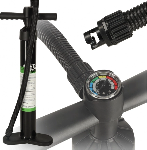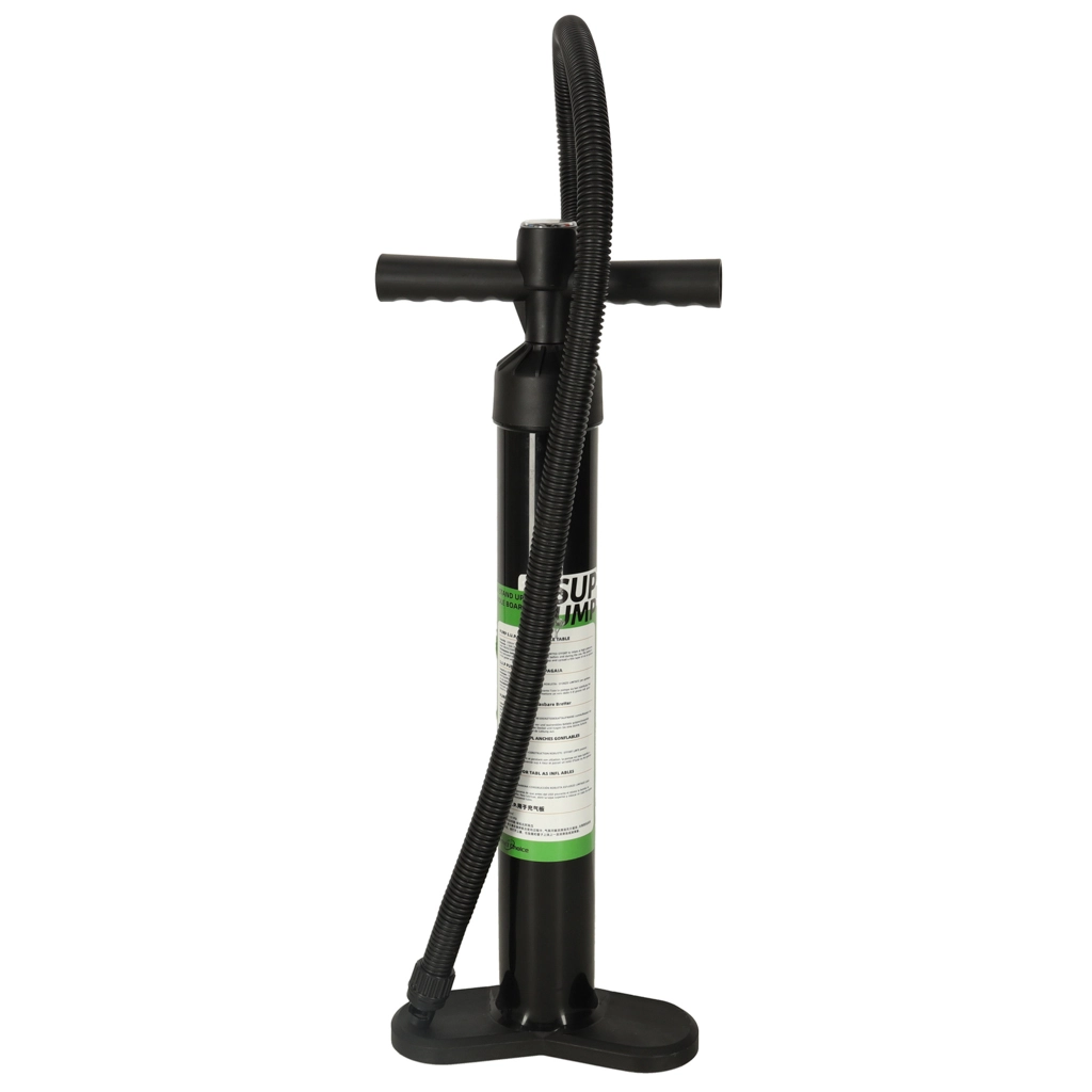 Handbetriebene Hochdruckpumpe für SUP ist ein unverzichtbares Werkzeug für schnelles und effizientes Aufpumpen nicht nur von SUP-Boards, sondern auch anderer aufblasbarer Produkte. Mit dem integrierten Manometer können Sie den Druck genau kontrollieren für eine optimale Aufblasung der Ausrüstung. Die Pumpe ist mit stabilen Fußstützen ausgestattet, die Stabilität beim Pumpen gewährleisten, und einem 'T' Griff, der einen bequemen und sicheren Halt bietet, was für eine komfortable Nutzung entscheidend ist. Mit dieser Pumpe sind Sie schnell bereit, das Board auf dem Wasser zu genießen und jedes Abenteuer zu erleben!