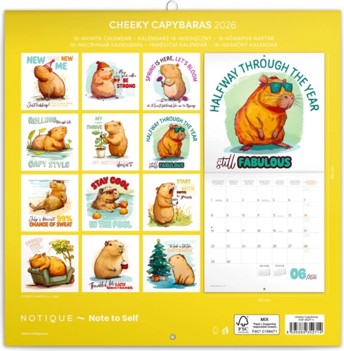 Unser Notizkalender Fröhliche Wasserschweine 2026 ist mehr als nur ein gewöhnlicher Kalender. Jeden Monat bringt er eine neue Illustration von Wasserschweinen, die Sie zum Lächeln bringen und erfreuen werden. Dank des ausreichenden Platzes für Ihre Notizen und Pläne ist der Kalender nicht nur ein ästhetisches, sondern auch ein praktisches Accessoire für Ihr Zuhause oder Büro. Er bietet:
