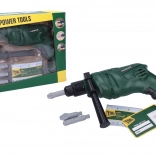 Im Set enthalten sind ein praktischer Halter und drei austauschbare Aufsätze, mit denen das Kind verschiedene Tätigkeiten wie „Bohren“ oder „Schrauben“ ausprobieren kann. Das Spielzeug motiviert zu Selbstständigkeit und spielerischem Lernen.