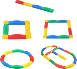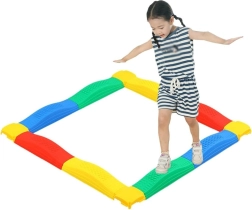 Der sensorische Balancierpfad besteht aus 16 sensorischen Platten mit rauem, erhabenem Oberflächeneinsatz, der die Fußrezeptoren stimuliert, und 4 flexiblen Verbindungselementen, die Vielzahl an Routenanordnungen ermöglichen - von geraden Linien bis hin zu gebogenen Kreisen und geschlossenen Formen wie Kreis oder Quadrat.