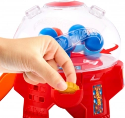 Erkunden Sie den unterhaltsamsten Ort in Hot Wheels City mit dem Kaugummi-Laden Spielset. Das Set ist von klassischen Kaugummiautomaten inspiriert und ermöglicht es Kindern, kreative Geschichten zu entwickeln, während sie mit dem donutförmigen Fahrzeug fahren.