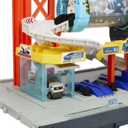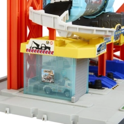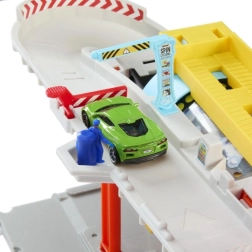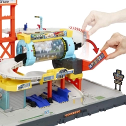 Enthalten ist eine Servicestation mit funktionsfähiger Hebebühne und Bereich für den Reifenwechsel sowie eine Garage mit öffnenden Türen und Parkplätzen. Das Set enthält zwei Metallautos im Maßstab 1:64 – eine Corvette und ein Abschleppwagen – für noch realistischere Spielszenarien. Wasser wird nicht benötigt, sodass der Spaß sauber und sorgenfrei bleibt.
