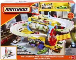 Das Matchbox Turbo Zyklon Spielset verwandelt das Kinderzimmer in eine belebte Autowaschanlage mit Service. Die Autos fahren die Spiralrampe ins obere Stockwerk, wo ein „Parker“ sie in den drehenden Waschtunnel leitet. Ziehe am Hebel und die transparente Trommel rotiert – sie stoppt zufällig im Modus „schmutzig“, „eingeseift“ oder „sauber“. Ist das Fahrzeug „sauber“, rollt es automatisch die Rampe hinunter und macht Platz für das nächste.