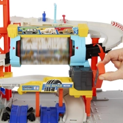Entfache die Fantasie der Kinder mit dem mehrstöckigen Matchbox Turbo Zyklon Spielset. Dich erwarten ein rotierender transparenter Tunnel, eine Service-Station mit Aufzug und Reifenwechsel, Parkplätze und eine Garage. Ohne Wasser, ohne Sauerei – nur reine Action mit zwei Metallautos im Maßstab 1:64. Eine rotierende Waschanlage, flüssige Fahrten über Rampen und eine Service-Infrastruktur sorgen für stundenlanges kreatives Spielen.
