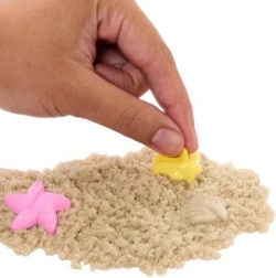 Das Spiel mit Sand wird durch eine Schaufel und drei vom Ozean inspirierte Förmchen bereichert, die ermöglichen, verschiedene Formen und Muster zu erstellen.