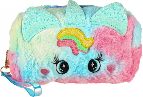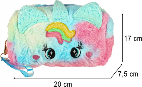 Die Kosmetiktasche ist mit einem niedlichen Design mit Regenbogenmuster und einzigartigen Ohren ausgestattet und stellt ein großartiges ästhetisches Accessoire für jede kleine Prinzessin dar.