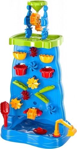 Die breite Basis und die von beiden Seiten zugängliche Wand ermöglichen gemeinsames Spiel. Kinder können gleichzeitig Wasser eingießen, Kaskaden verfolgen und sich drehende Räder beobachten – ideal zum Teilen und für Zusammenarbeit.