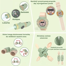 Das Woopie-Camping-Set bietet verschiedene realistische Zubehörteile, die Kindern ein authentisches Camping-Erlebnis bieten. Set ist ausschließlich für Spielzwecke bestimmt und nicht für echtes Campen geeignet.