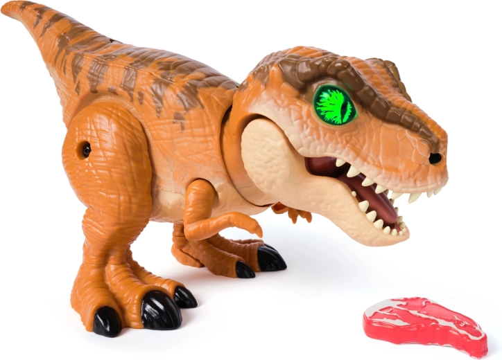 Schnelle Bewegungen, leuchtende Augen, Brüllen und Knurren. Der T‑Rex reagiert auf Berührung, Geräusche und Training – füttern Sie ihn und bringen Sie ihm neue Tricks bei.