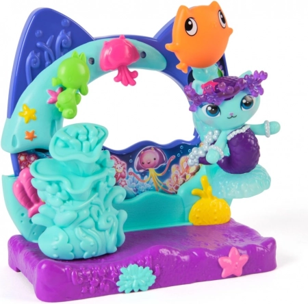 Dieses Spielset mit Unterwasserbalkon verwandelt jedes Spiel in ein miauuu‑großartiges Abenteuer. Der stabile Sockel mit Korallen, Quallen und Accessoires ist ideal für imaginative Geschichten, während die niedliche Katzen‑Meerjungfrau Fischy zur neuen Lieblingsfigur der Kinder wird.
