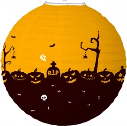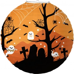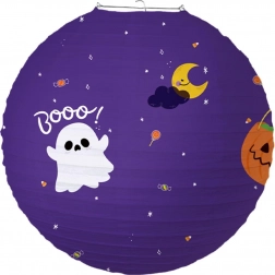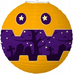 Dieser dekorative Lampion ist ideal für Halloween-Partys, die Dekoration von Kinderzimmern, Gärten und Schaufenstern. Die runde Form, markanten orange- und violettfarbenen Töne sowie die typischen Halloween-Motive sorgen für einen sofortigen Effekt. Dank Metallhaken und Innenrahmen lässt er sich leicht zusammensetzen und aufhängen.