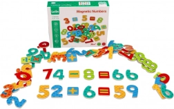 Unterhaltsame und lehrreiche magnetische Holz-Zahlen für Kinder ab 3 Jahren. Die gesamte Oberfläche der Zahlen ist mit einem Magneten bedeckt, der eine einfache Befestigung an jeder magnetischen Oberfläche ermöglicht.
