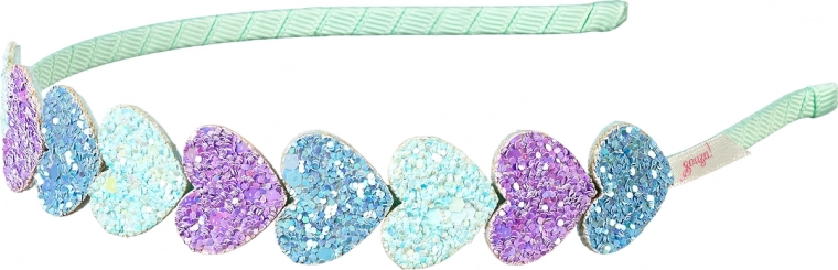 Stilvolles Haarband für kleine Mädchen, verziert mit glitzernden Herzchen in blauen Tönen. Das ideale Accessoire für alltägliche Frisuren und festliche Anlässe.