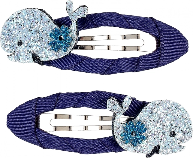 Kombinieren Sie Stil und Funktionalität mit diesen entzückenden Haarspangen, die mit einem glitzernden Wal verziert sind. Jede Spange hat einen Metallteil, der mit einem Stoffband überzogen ist, was nicht nur ihre Attraktivität erhöht, sondern auch Sanftheit im Haar gewährleistet. Dank der Festigkeit und Zuverlässigkeit des Schnappverschlusses bleiben die Spangen den ganzen Tag über sicher an ihrem Platz.