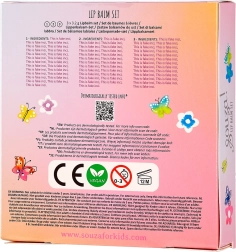 Entdecke das lustige Set aus Lippenbalsamen in Violett, Rosa und Orange. Die Balsame sind dermatologisch getestet, also völlig sicher und geeignet für die empfindliche Kinderhaut: