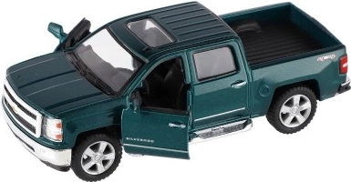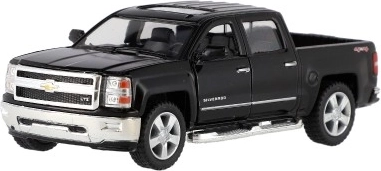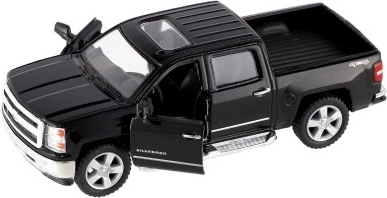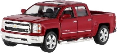 Erleben Sie eine detailreiche Replik des ikonischen Pickups CHEVROLET Silverado 2014. Eine Karosserie aus Metall mit Kunststoffteilen, hochwertige Lackierung und originalgetreue Proportionen erfreuen kleine Fahrer wie auch Sammler. Das Auto verfügt über öffnende Türen, sodass der aufwendig gestaltete Innenraum sichtbar wird.