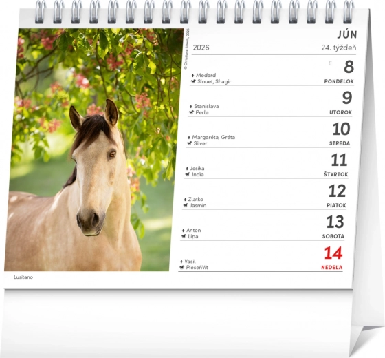 Genießen Sie jeden Tag des Jahres 2026 mit dem Notique-Kalender, der Schönheit und Eleganz der Pferde direkt auf Ihren Tisch bringt. Dieser Tischkalender mit den Maßen 16,5 x 13 cm ist praktisch und gleichzeitig ästhetisch ansprechend.