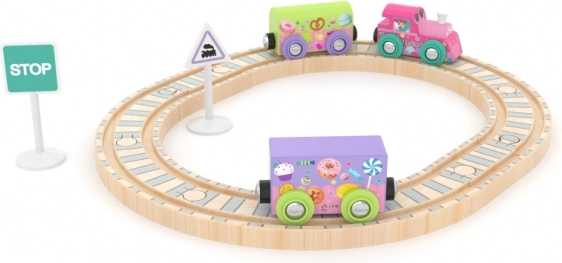 Dieses Holz-Eisenbahnset ist die ideale erste Bahn für die Kleinsten. Dank der attraktiven Farben und des mädchenhaften Designs zieht es Kinder leicht ins Spiel und regt ihre Vorstellungskraft an. Die Materialien sind umweltschonend und frei von Chemikalien, sodass Sie sich auf sicheres Spielen jeden Tag verlassen können.