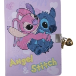 Entdecken Sie die Freude am Gestalten mit dem eleganten, abschließbaren Crystal Art Notizbuch. Mit den farbigen Steinchen kreieren Sie mühelos ein funkelndes Design mit dem beliebten Motiv Stitch und Angel. Die linierten A5-Seiten sind ideal für Notizen, Tagebuch, Schulaufschriebe und kreative Ideen.