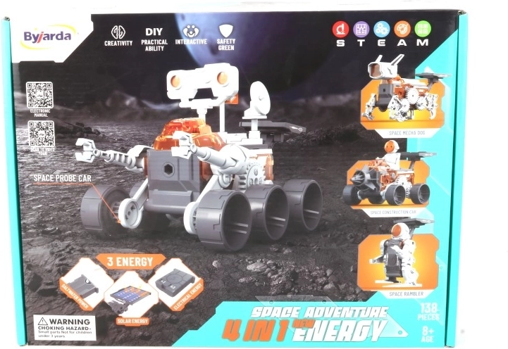 Dieses 4-in-1 Weltraum-Set ist ein großartiger Einstieg in die Welt moderner Energien und Mechanik. Nutzer bauen vier verschiedene Modelle und probieren praktisch aus, wie solarer, elektrischer und salzwasserbetriebener Antrieb funktioniert. Das Set ist so konzipiert, dass es Spaß macht und zugleich logisches Denken sowie Feinmotorik fördert.