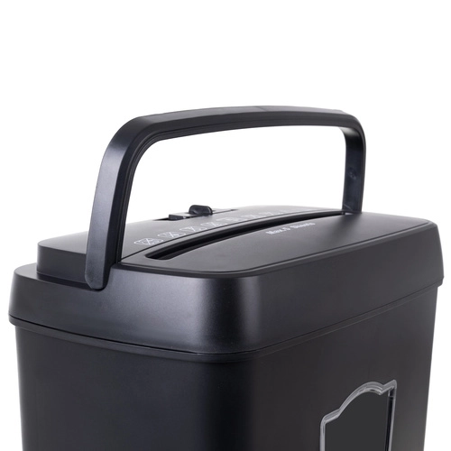 Der Schredder ist mit Blick auf einfaches Tragen und Handhabung gefertigt. Er verfügt über ein transparentes Fenster für die einfache Überwachung des verbleibenden Speichers im Behälter und wird mit einem Halter zur bequemen Handhabung geliefert.