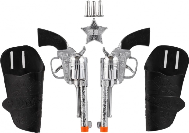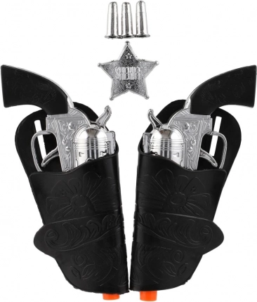 Das Cowboy-Set mit zwei Plastikpistolen und einem Holster verwandelt jedes Kind in einen echten Sheriff des Wilden Westens. Es ermöglicht abenteuerliche Spiele voller Action mit Schwerpunkt auf realistischen Details und kreativen Vorstellungen.