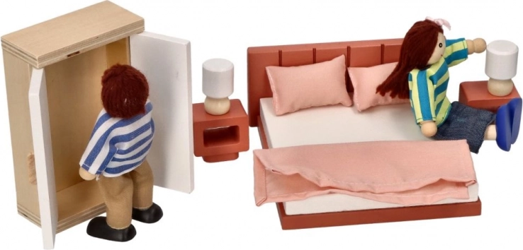 Rüsten Sie das Puppenhaus mit einem wunderschönen Schlafzimmer aus, das detaillierte Nachbildungen echter Möbel enthält. Dieses Möbelset ist ideal für Kinderfantasien und ermöglicht unzählige Spielszenarien.