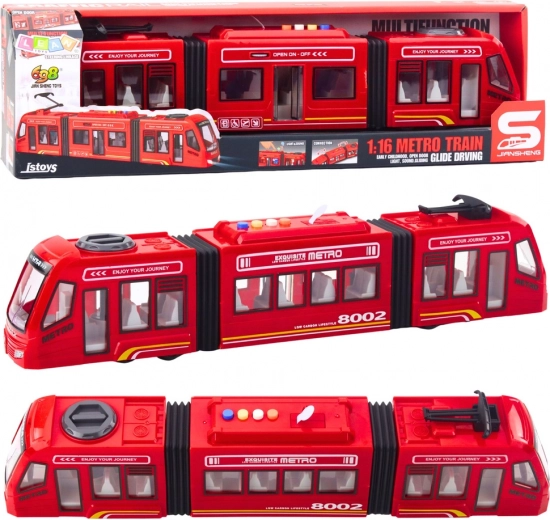 Das Stadtbahnmodell im Maßstab 1:16 stellt ein realistisches Schienenfahrzeug dar, das jeden Fan des öffentlichen Verkehrs erfreut. Dank seines klassischen roten Farbschemas und der durchdachten Details verzaubert es wie ein echter Zug, bekannt von städtischen Linien. Hervorragende Materialqualität verleiht dem Spielzeug Langlebigkeit und viele Funktionen involvieren Kinder in aktives und kreatives Spielen.