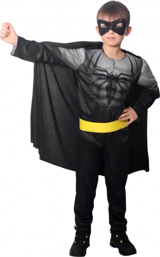 Dieses einzigartige Spinnenkrieger-Kostüm ist für Jungen im Alter von 6-8 Jahren entworfen und verleiht ihnen ein Superhelden-Gefühl. Es beinhaltet einen schwarz-grauen Overall mit einem Spinnenzeichen auf der Brust, das für Authentizität sorgt. Im Set enthalten sind auch ein abnehmbarer schwarzer Umhang und eine bequeme Stoff-Maske.