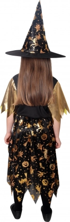Bereiten Sie Ihre kleine Hexe auf Halloween mit diesem fantastischen schwarz-goldenen Kostüm vor, das einen perfekt passenden Hut enthält und jeden Teilnehmer des Karnevals beeindrucken wird!