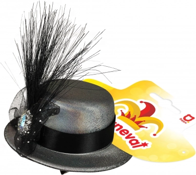 Eleganter silberner Minihut mit schwarzem Band, Federn und Tüll, verziert mit einem Schmuckstück, verleiht Ihrer Frisur Pfiff. Dank zwei Klammern einfach für sicheres Tragen zu befestigen. Mehr anzeigen