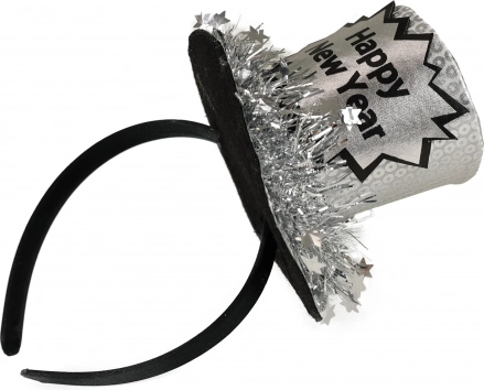 Feiern Sie den Neujahrsbeginn stilvoll mit diesem silbernen Mini-Hut, der an einem bequemen Stirnband befestigt ist. Dieses elegante Accessoire verleiht Ihrem Outfit einen festlichen Touch und zieht garantiert die Aufmerksamkeit auf jeder Silvesterparty auf sich.