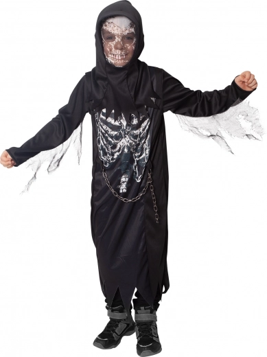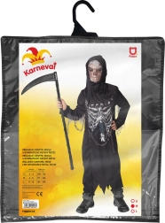 Das Karnevalskostüm für Kinder, Sensenmann, ist für Kinder im Alter von 6-8 Jahren mit einer Größe von 117-128 cm entworfen. Dieses Kostüm umfasst: