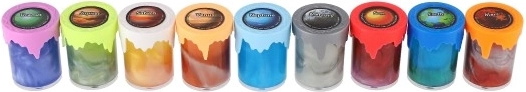 Jeder Becher stellt einen anderen Planeten mit einer charakteristischen Farbkombination dar. Der Schleim eignet sich für Zuhause, Schule und Büro – perfekt als Antistress-Helfer und kreative Aktivität.