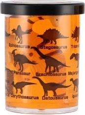 Jeder Becher verbirgt kleine Dinosaurier und einen Aufdruck mit ihren Silhouetten und Namen – Spaß und Lernen in einem.