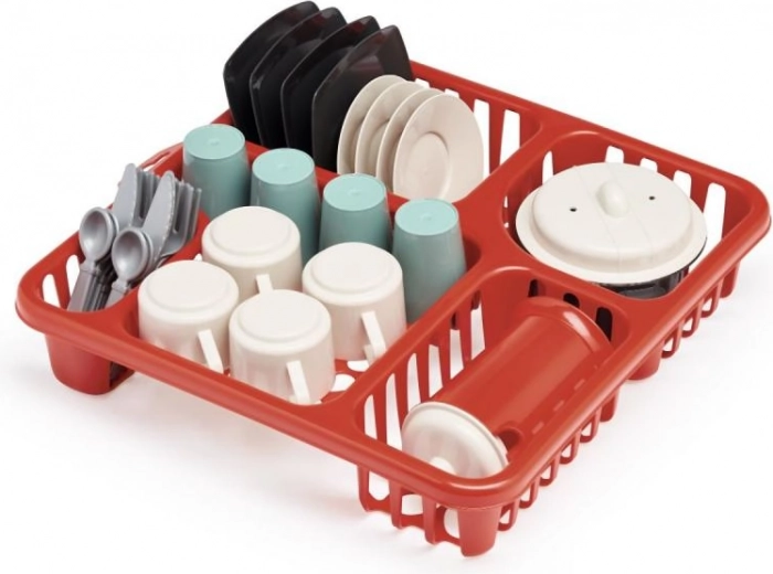 Dieses Kindergeschirrset mit Abtropfgestell macht aus jeder Küchenecke einen Ort voller Fantasie. Kinder können in das Spiel eintauchen und Erwachsene beim Kochen und Servieren nachahmen.