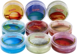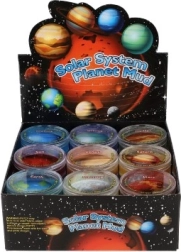 Entdecken Sie das Weltall spielerisch mit planeteninspiriertem Schleim! Jede transparente Dose enthält farbigen, langsam ziehenden Schleim mit Motiven von Planeten wie Saturn, Jupiter, Erde oder Neptun. Eine tolle sensorische Spielidee für Kinder ab 3 Jahren, die Kreativität und Feinmotorik fördert.