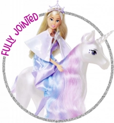 Erleben Sie wunderschöne Erlebnisse mit der Puppe Steffi in einem magischen Prinzessinnenkleid und ihrem bezaubernden leuchtenden Einhorn, das eine lange Mähne hat, ideal zum Frisieren.