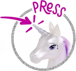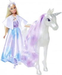 Entdecken Sie die Welt der Fantasie mit der Puppe Steffi, die in einem magischen Prinzessinnenkleid gekleidet ist, ideal für jedes Märchen. Ihr treuer Begleiter, das Einhorn, beeindruckt nicht nur durch seine Leuchtfunktion, sondern ermöglicht auch die Kreation verschiedener Frisuren dank seiner langen Mähne.