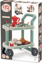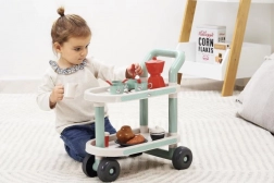 Wir präsentieren den Frühstücksservierwagen mit Zubehör, ideal für kleine Baristas und Bäcker. Dieses Set umfasst insgesamt 22 Teile, die alles bieten, was Sie für einen perfekten Vormittagssnack benötigen. Der Wagen ist auf Rädern, was eine einfache Beweglichkeit im Zimmer oder Garten gewährleistet.