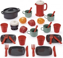 Teller, Besteck, Becher, Tassen, Kännchen mit Deckel, Topf mit Deckel, Obst