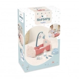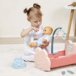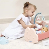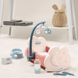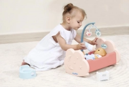 Erstaunliches Kinderbett für Puppen mit komplettem Zubehör für das perfekte Spiel. Enthält ein Mobile über dem Bett, eine Flasche, ein Töpfchen und einen Kamm für das beste Puppenpflegeerlebnis.