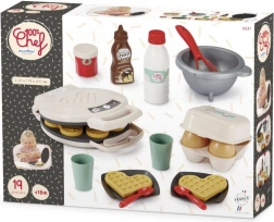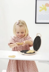 Dieses Waffeleisen ist ideal für Kinder, die mit dem Backen experimentieren möchten. Das Set enthält alles, was zur Zubereitung leckerer Waffeln benötigt wird. Das Waffeleisen mit den Maßen 21 x 17 x 5 cm wird mit mehreren Accessoires geliefert. Sie können zwischen der Zubereitung von Waffeln mit Marmelade oder Schokoladenglasur wählen. Zum Lieferumfang gehören auch Geschirr für zwei, Eier, Milch und eine Schüssel mit Schneebesen.