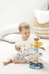 Abrick Turm mit Bällen ist das ideale Spielzeug für kleine Kinder, das die Motorik und Koordination fördert. Dieses farblich sanfte Set mit einem Bärchen an der Spitze bringt stundenlangen Spaß.