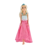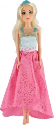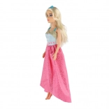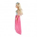 Der lange rosa Rock mit Glanz und das kontrastierende blaue Oberteil verleihen der Puppe einen außergewöhnlichen Look – ideal für Ball und Modenschau.