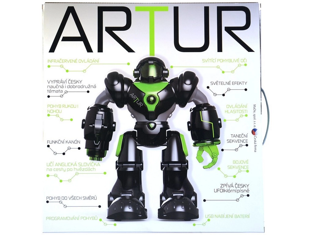 Artur spricht Tschechisch und erzählt Geschichten aus der Serie Zigybot. Er lehrt auch englische Wörter, was die Sprachfähigkeiten von Kindern fördert.