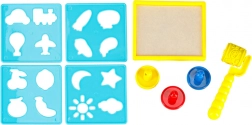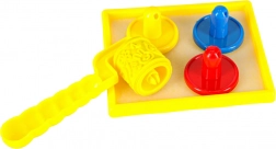 Fördern Sie die Kreativität mit drei bunten Stempeln für Abdrücke und Schablonen zur Erstellung unterschiedlicher Formen.