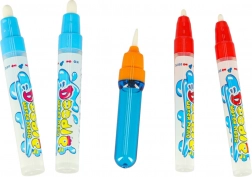 Vier Wasser-Marker mit blauen und roten Kappen sind nachfüllbar, einfach zu bedienen und ideal für kleine Künstler.